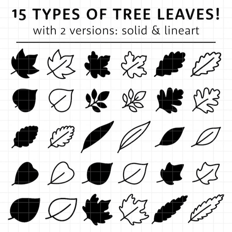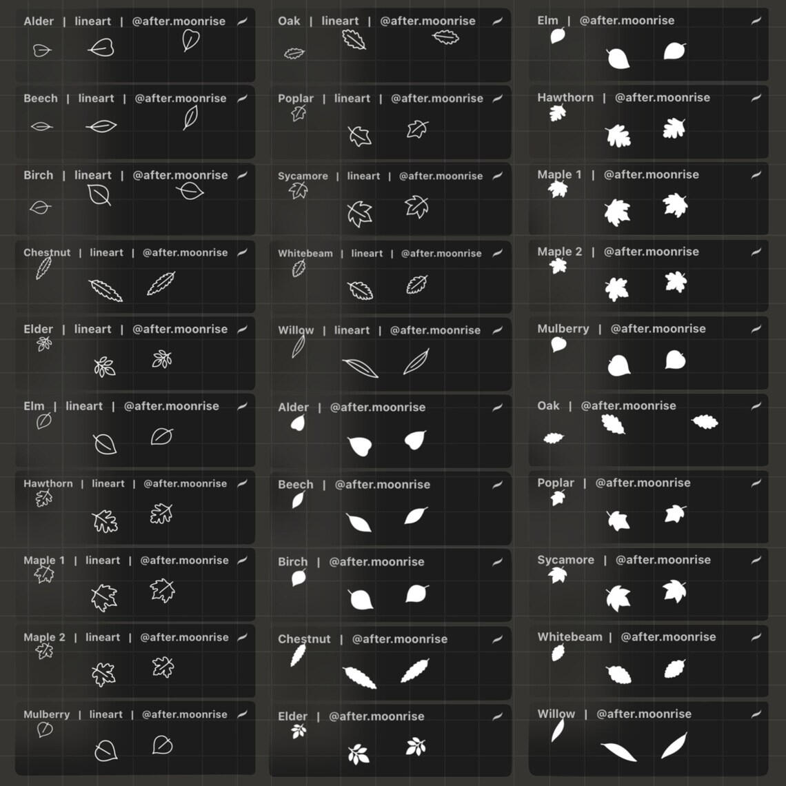 ⟡ 15 Different Tree Leaf Stamp Brushes (30 Brushes Total)
